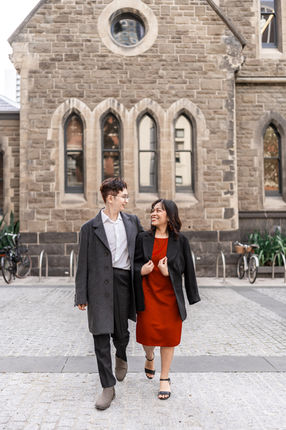 In the picturesque embrace of Fitzroy Garden, Lily and Buddy embarked on a timeless stroll beneath the rustling autumn leaves. The wind, a gentle narrator, whispered secrets, stirring a cascade of golden foliage that descended like a beautiful yellow raindrop.
