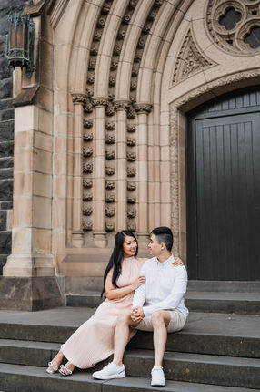 Embarking on a joyous stroll around this iconic building, our love story unfolded against the backdrop of classical yet timeless elegance, enhancing the uniqueness of our portraits. As the day continued, our journey took a whimsical turn with a cheerful walk accompanied by ducks around the enchanting garden.